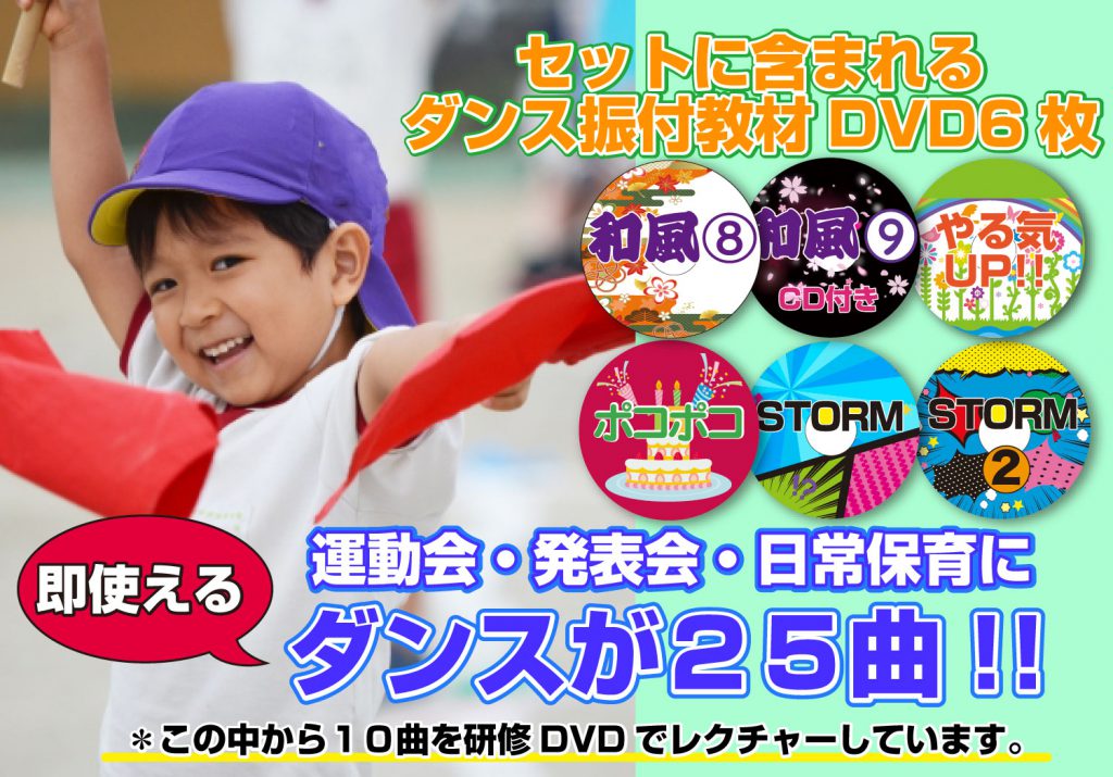 「ダンス・お遊戯研修DVD」には「ダンス振付教材DVD」6枚がセットになっています。